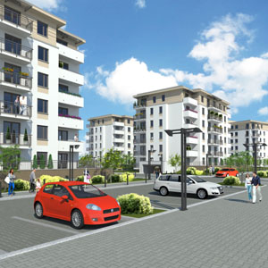 Na terenie inwestycji zaprojektowano sześć sześcio-kondygnacyjnych budynków z garażami podziemnymi.